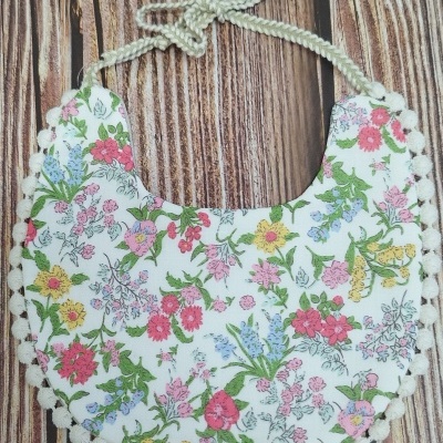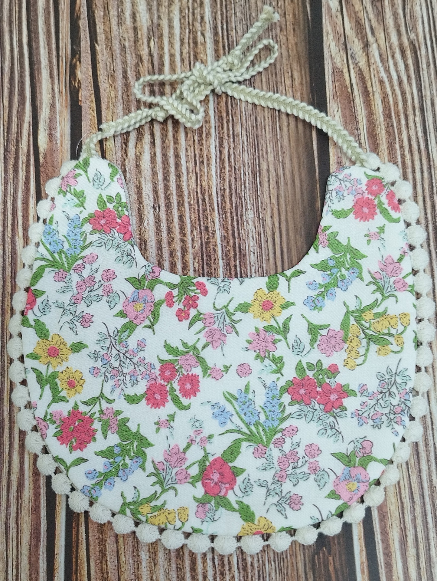 Babete reversível "Flores" 6,00 € Desconto de %. IVA incluído. Partilhar O produto encontra-se sem stock. Lindo babete que pode ser utilizado dos dois lados, sendo muito versátil para combinar com a roupinha do bebé. Fecha-se com um laço. Feito em tecido 100% algodão, NÃO é impermeável. Ideal para passeios cheios de estilo! MATERIAL: 100% algodão TAMANHO: L18cm x A17cm CUIDADOS: Lavar à mão ou à máquina, num ciclo delicado e água à baixa temperatura. Secar à sombra. Marca Lili Bee Tags BabeteBabete bebeBabete reversívelBaby bibbabete de algodãoCotton bib