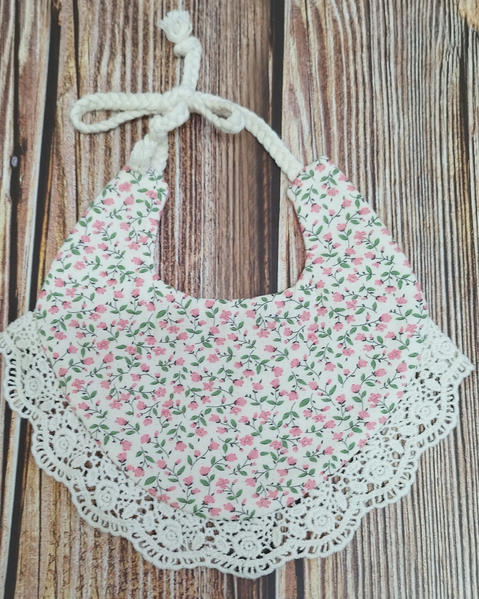 Babete reversível "Petit Fleur" com renda 8,00 € Desconto de %. IVA incluído. Partilhar Comprar Contactar 3 unidades em stock Lindo babete que pode ser utilizado dos dois lados, sendo muito versátil para combinar com a roupinha da bebé. Fecha-se com um laço. Feito em tecido 100% algodão, NÃO é impermeável. Ideal para passeios cheios de estilo! MATERIAL: 100% algodão TAMANHO: L18cm x A17cm CUIDADOS: Lavar à mão ou à máquina, num ciclo delicado e água à baixa temperatura. Secar à sombra Marca Lili Bee Tags BabeteBabete bebeBabete reversívelBaby bibbabete de algodãoCotton bib