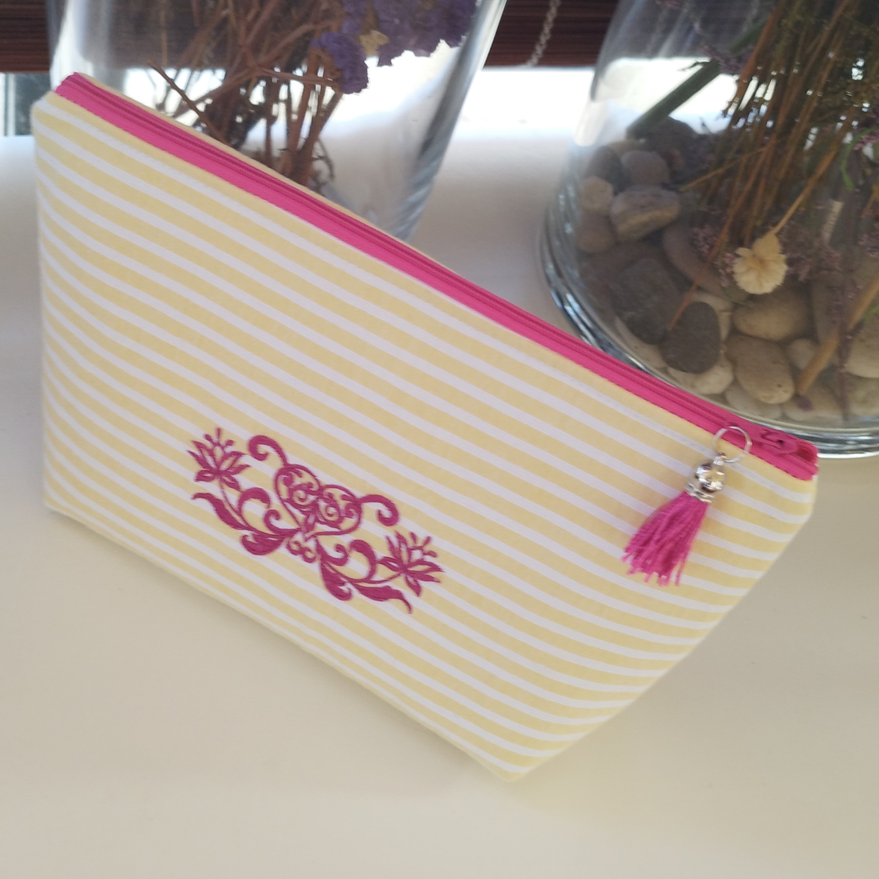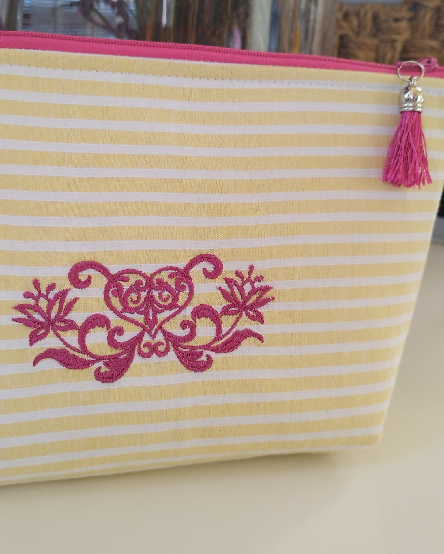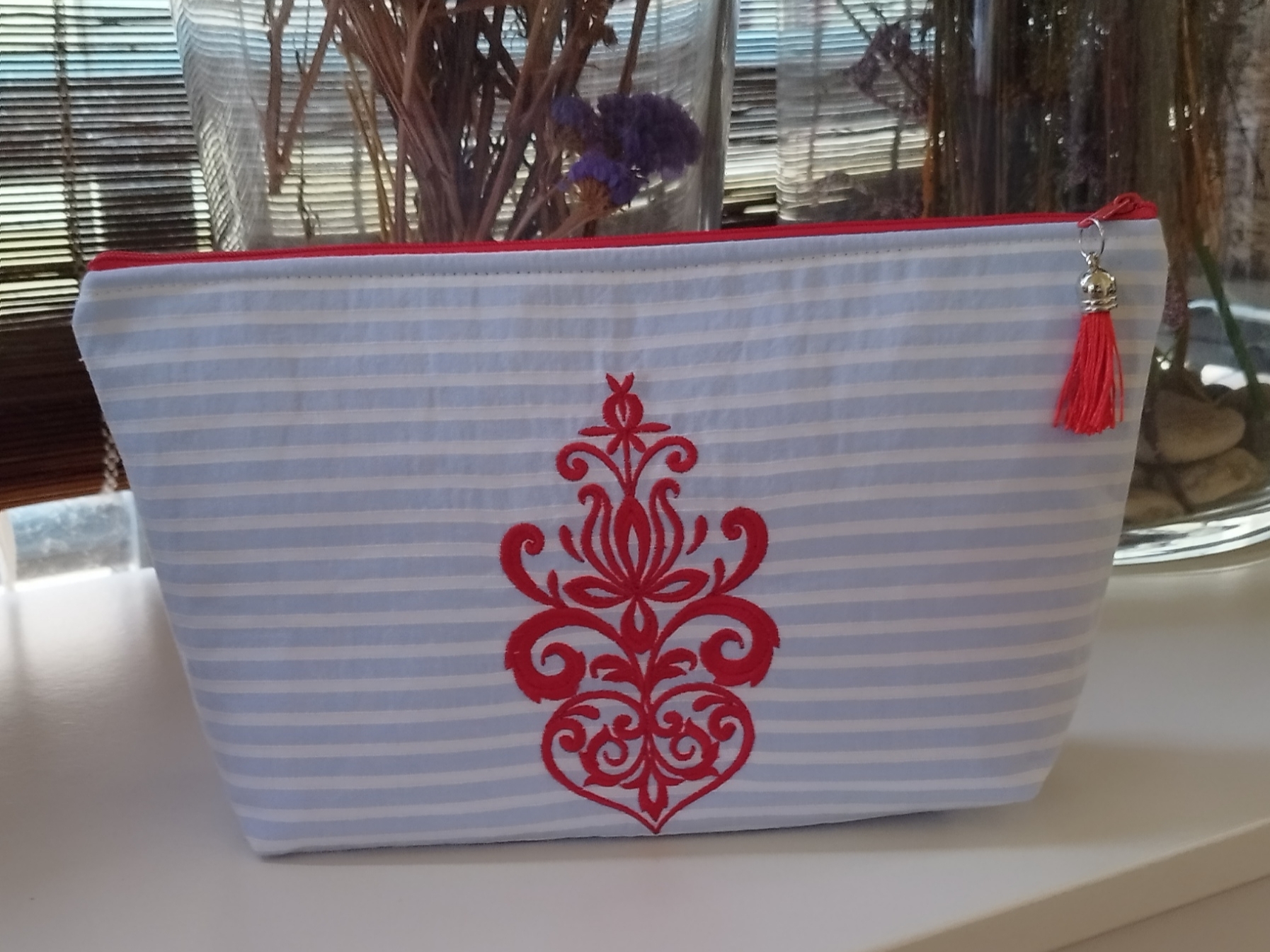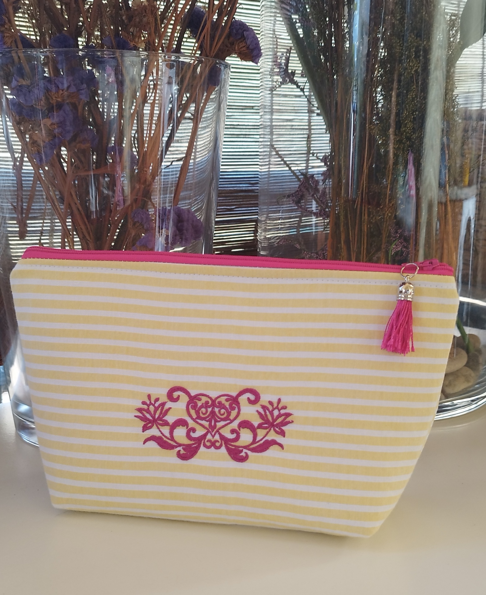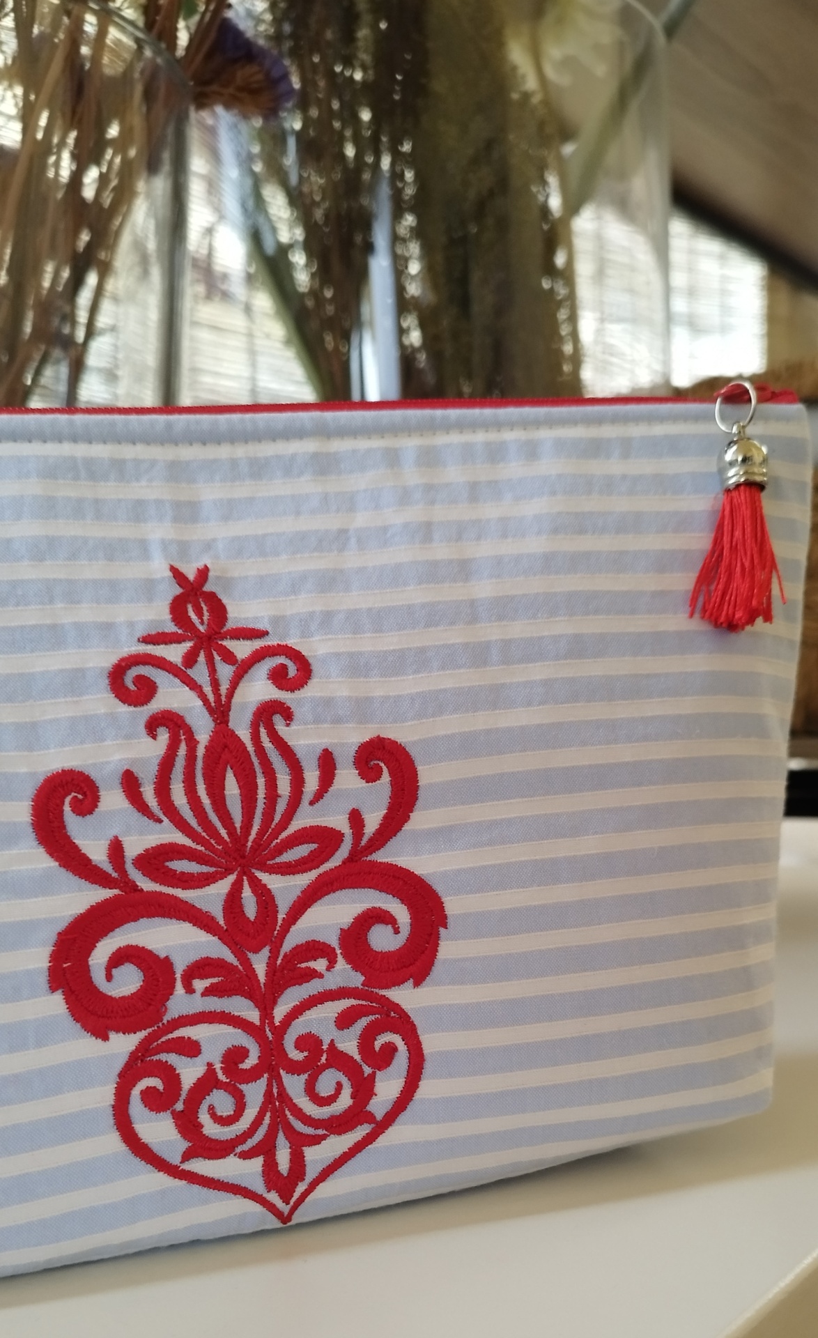 Nécessaire bordada Damasco 15,45 € 17,00 € Desconto de %. IVA incluído. Partilhar Cor Azul Amarelo Comprar Contactar 4 unidades em stock Cheia de estilo, uma bolsa que poderá utilizar como nécessaire ou como clutch para os dias alegres de verão. Um lindo bordado em relevo, realizado numa cor contrastante e no estilo adamascado lhe confere caráter único e sofisticado. Em duas cores alegres e vibrantes. MATERIAL: 100% algodão exterior e forro Poliéster entre camadas TAMANHO: C 27cm x A16cm x P8cm CUIDADOS: Lavar à mão Secar à sombra * Por ser um artigo fetio à mão, podem ocorrer pequenas diferenças no tamanho * Marca Lili Bee Tags NécessaireCosmetic bagBolsa de mãoBolsa multiusosHandmadePresente mulherDia da mãenecessaire femininanecessaire mulherbolsa femininabolsa mulher