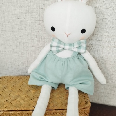 Feito em tecido de algodão, vestido com umas calças com suspensórios muito charmosas e uma linda gravatinha estilo "papillon", é a companhia mais preciosa de qualquer criança, para além de deixar a decoração de qualquer quarto ainda mais especial e mágico!