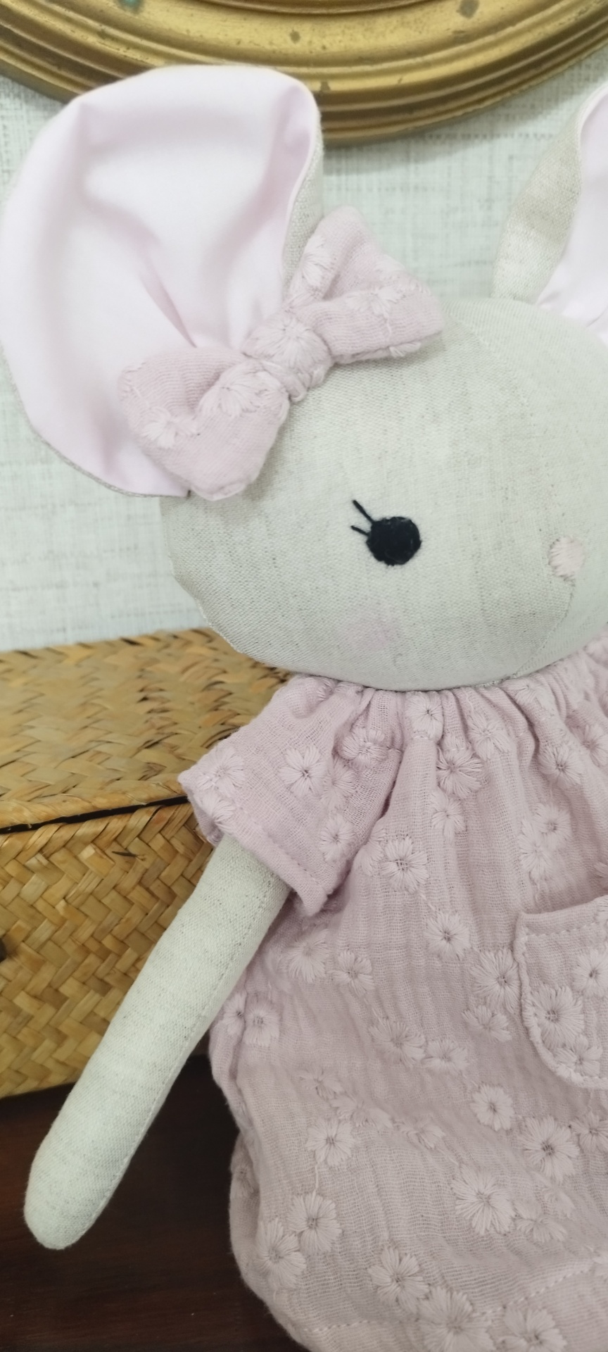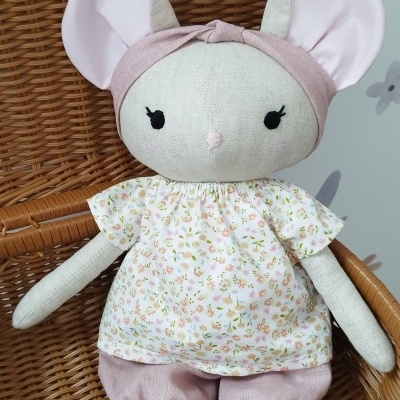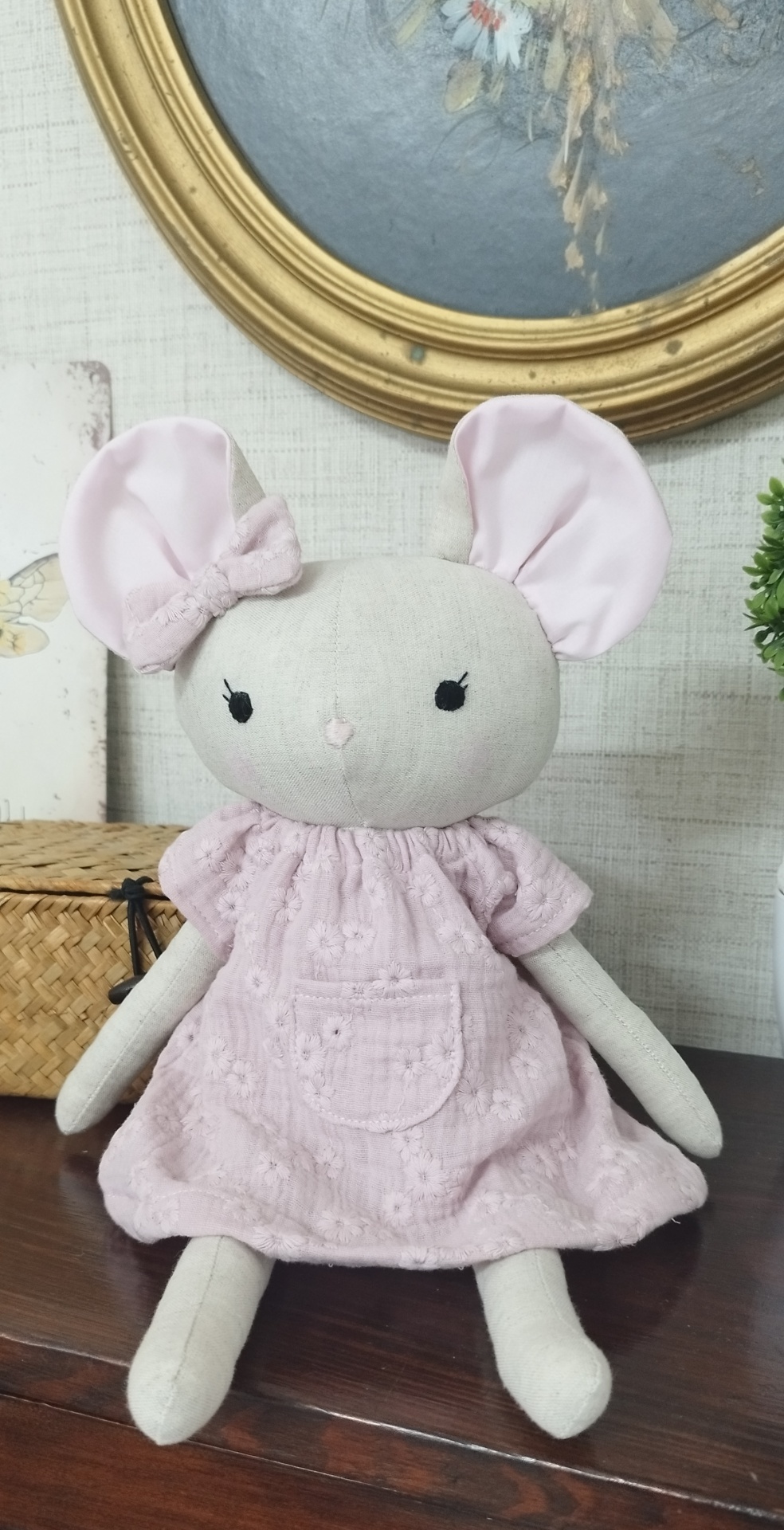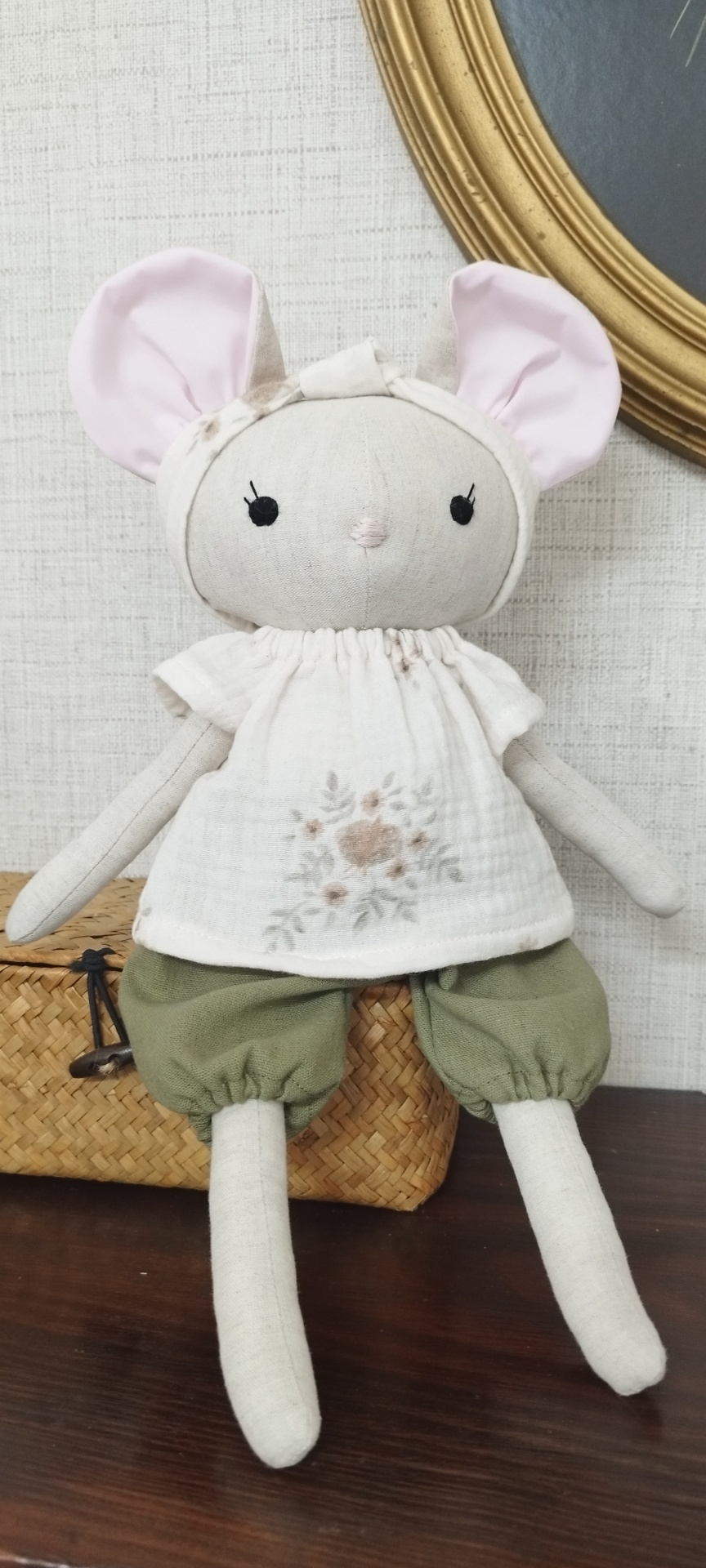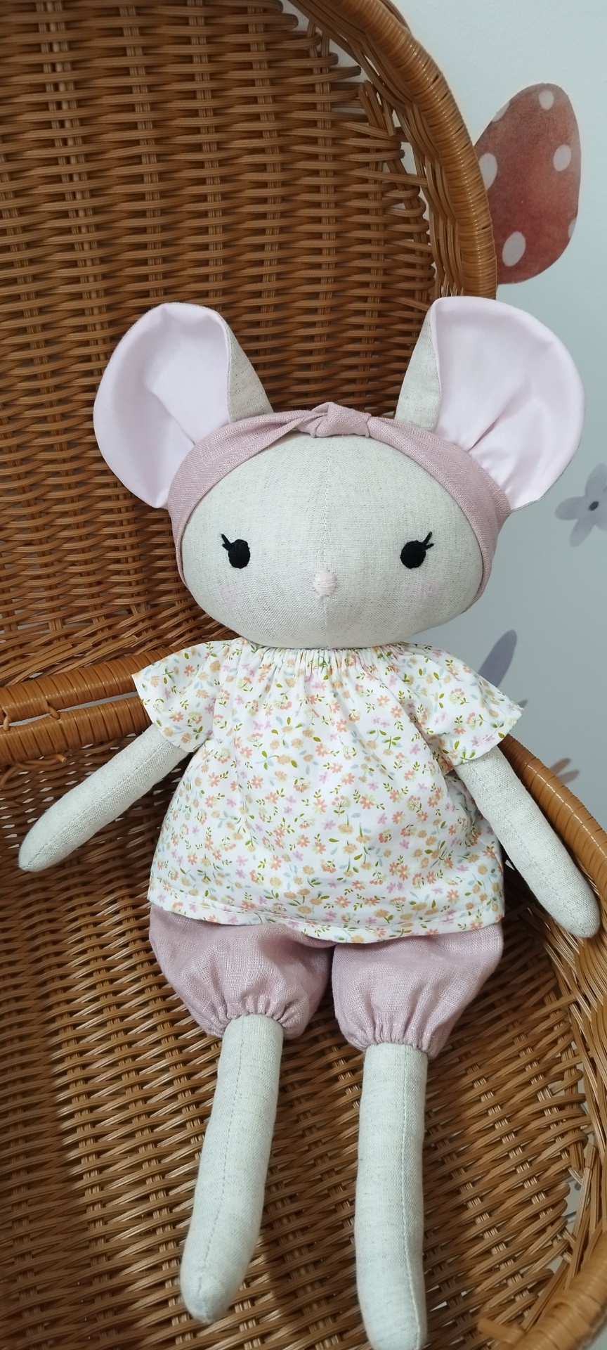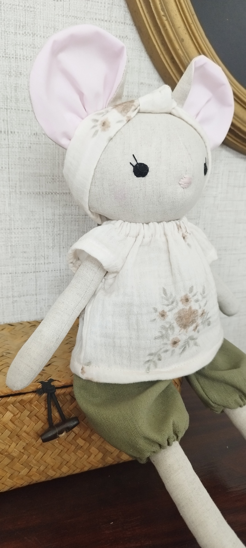Feita em tecido de algodão, esta linda ratinha pode ser confeccionada com duas opções de roupa: