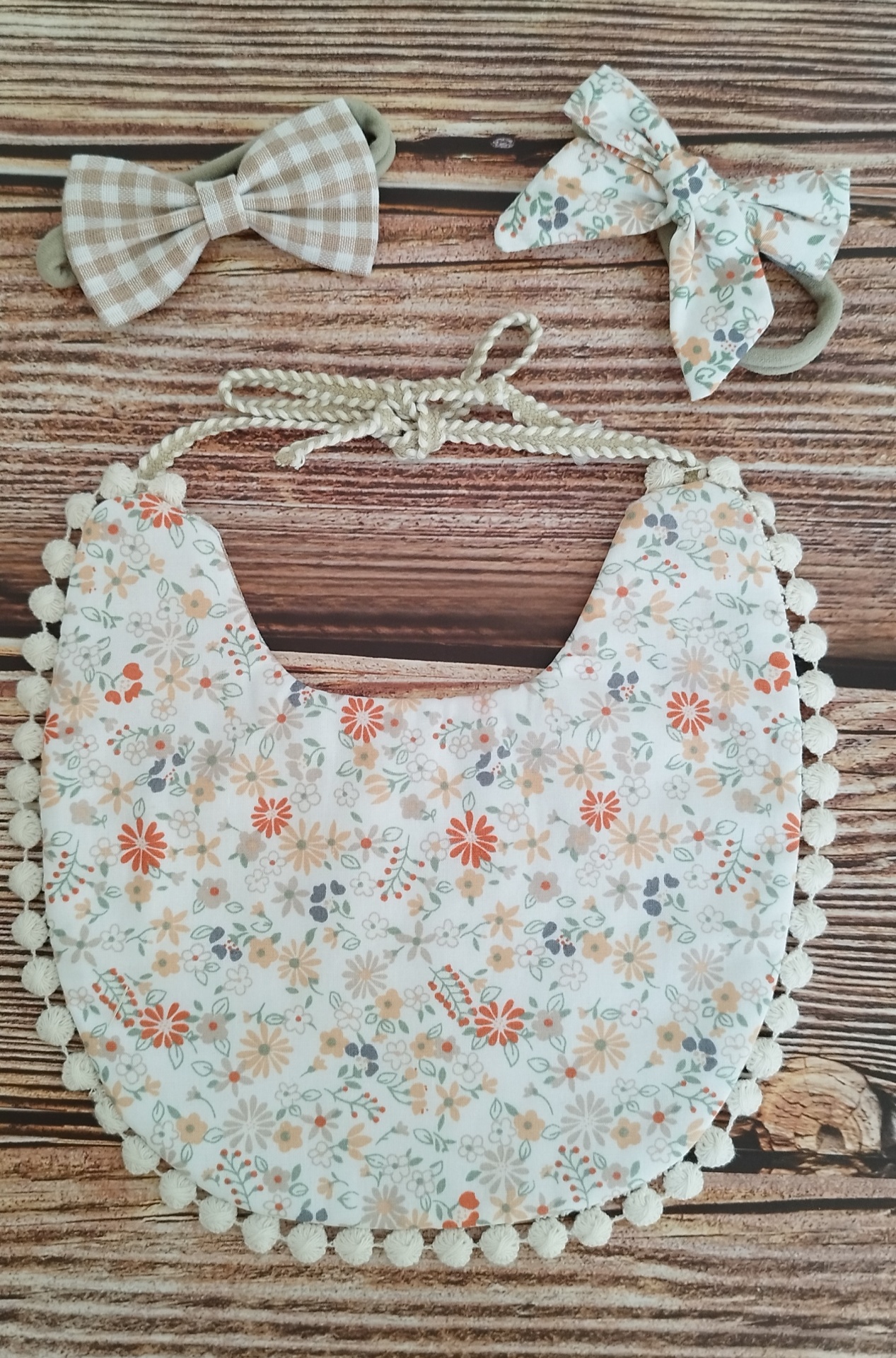 Conjunto de Babete reversível "Vichy" bege + Laços para a cabeça ou cabelo 14,00 € Desconto de %. IVA incluído. Partilhar Comprar Contactar 2 unidades em stock Lindo babete que pode ser utilizado dos dois lados, sendo muito versátil para combinar com a roupinha da bebé. Fecha-se com um laço. O conjunto fica perfeito com os laços a condizer para a cabecinha da bebé! Feito em tecido 100% algodão, NÃO é impermeável. Ideal para passeios cheios de estilo! O conjunto é formado por 1 babete + 2 laços MATERIAL: 100% algodão TAMANHO: L19cm x A18cm CUIDADOS: Lavar à mão ou à máquina, num ciclo delicado e água à baixa temperatura. Secar à sombra. Marca Lili Bee Tags BabeteBabete bebeBabete reversívelBaby bibbabete de algodãoCotton bib