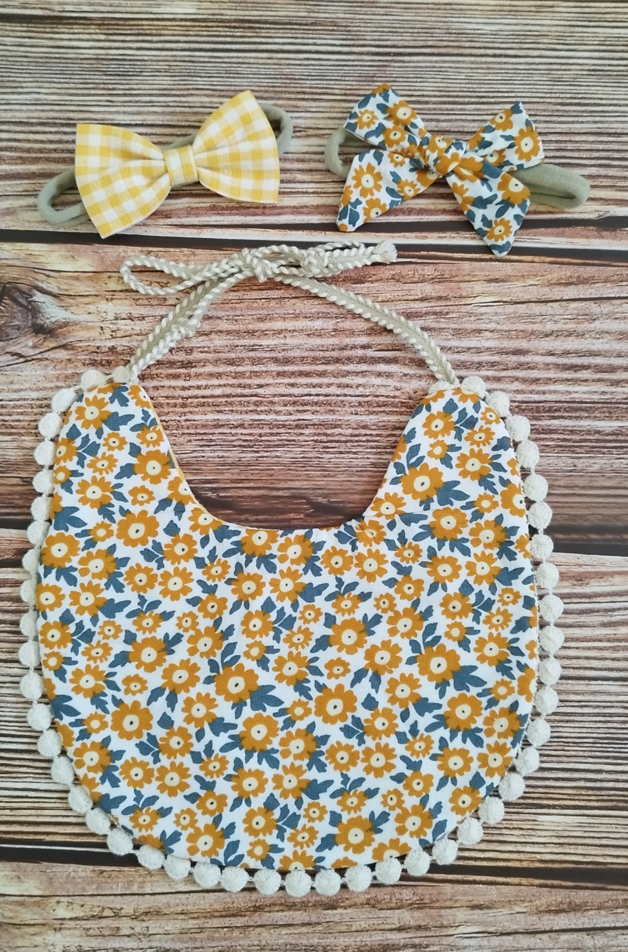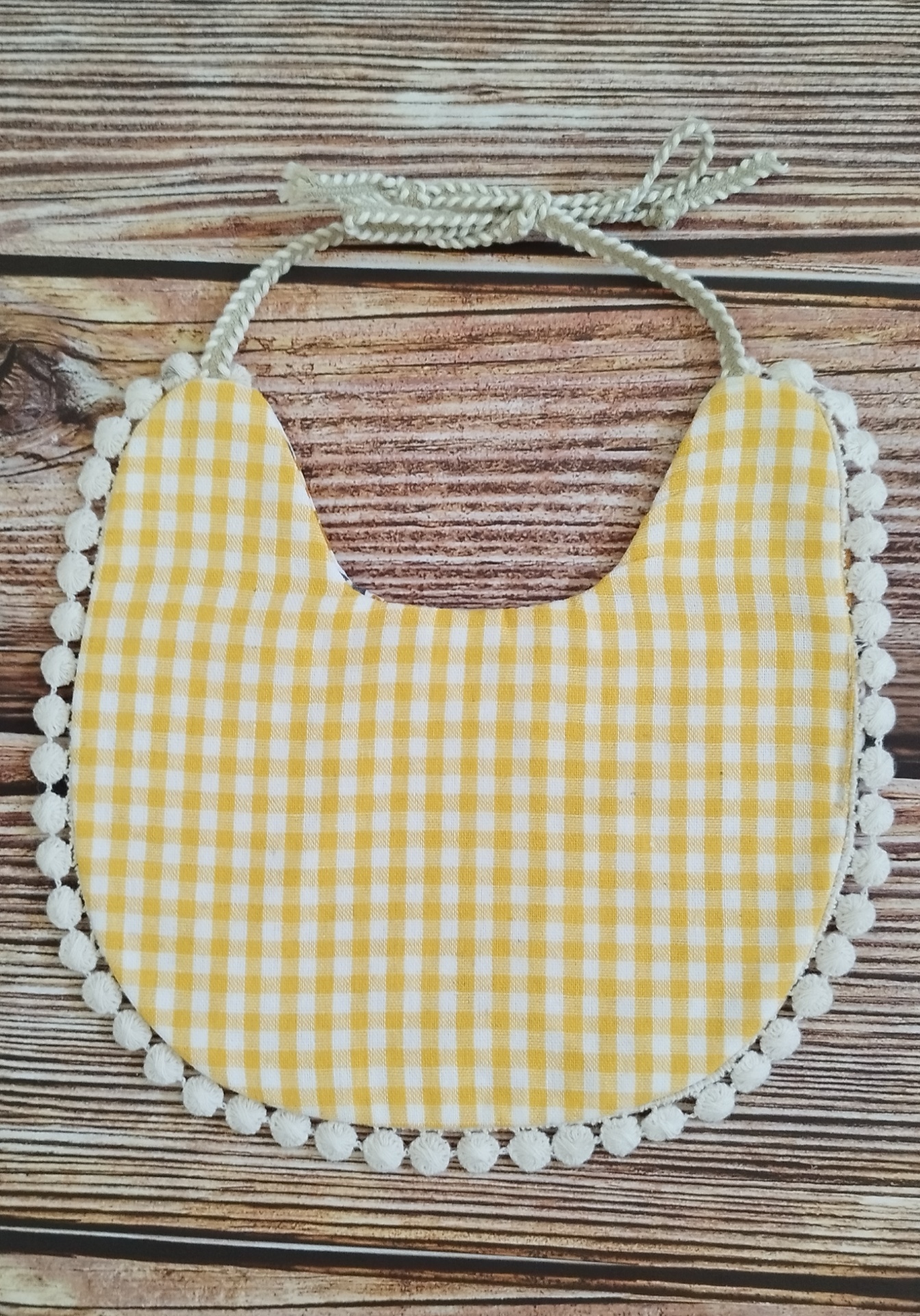 Conjunto de Babete reversível "Vichy" amarelo + Laços para a cabeça ou cabelo 14,00 € Desconto de %. IVA incluído. Partilhar Comprar Contactar 2 unidades em stock Lindo babete que pode ser utilizado dos dois lados, sendo muito versátil para combinar com a roupinha da bebé. Fecha-se com um laço. O conjunto fica perfeito com os laços a condizer para a cabecinha da bebé! Feito em tecido 100% algodão, NÃO é impermeável. Ideal para passeios cheios de estilo! O conjunto é formado por 1 babete + 2 laços MATERIAL: 100% algodão TAMANHO: L19cm x A18cm CUIDADOS: Lavar à mão ou à máquina, num ciclo delicado e água à baixa temperatura. Secat à sombra. Marca Lili Bee Tags BabeteBabete bebeBabete reversívelBaby bibbabete de algodãoVichyCotton bib