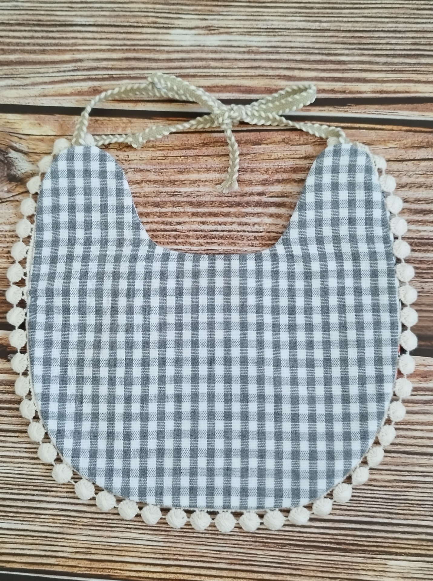 Conjunto de Babete reversível "Vichy" cinza + Laços para a cabeça ou cabelo 14,00 € Desconto de %. IVA incluído. Partilhar Comprar Contactar 2 unidades em stock Lindo babete que pode ser utilizado dos dois lados, sendo muito versátil para combinar com a roupinha da bebé. Fecha-se com um laço. O conjunto fica perfeito com os laços a condizer para a cabecinha da bebé! Feito em tecido 100% algodão, NÃO é impermeável. Ideal para passeios cheios de estilo! O conjunto é formado por 1 babete + 2 laços. MATERIAL: 100% algodão TAMANHO: L19cm x A18cm CUIDADOS: Lavar à mão ou à máquina, num ciclo delicado e água à baixa temperatura. Secar à sombra. Marca Lili Bee Tags BabeteBabete bebeBabete reversívelBaby bibbabete de algodãoCotton bib