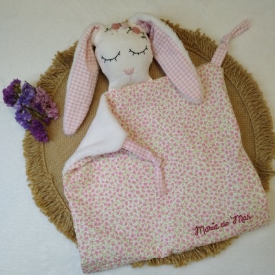 Feito em tecido de algodão de um lado e Minky do outro, este adorável e delicado doudou será um amiguinho de brincadeira e trará conforto para o bebé.