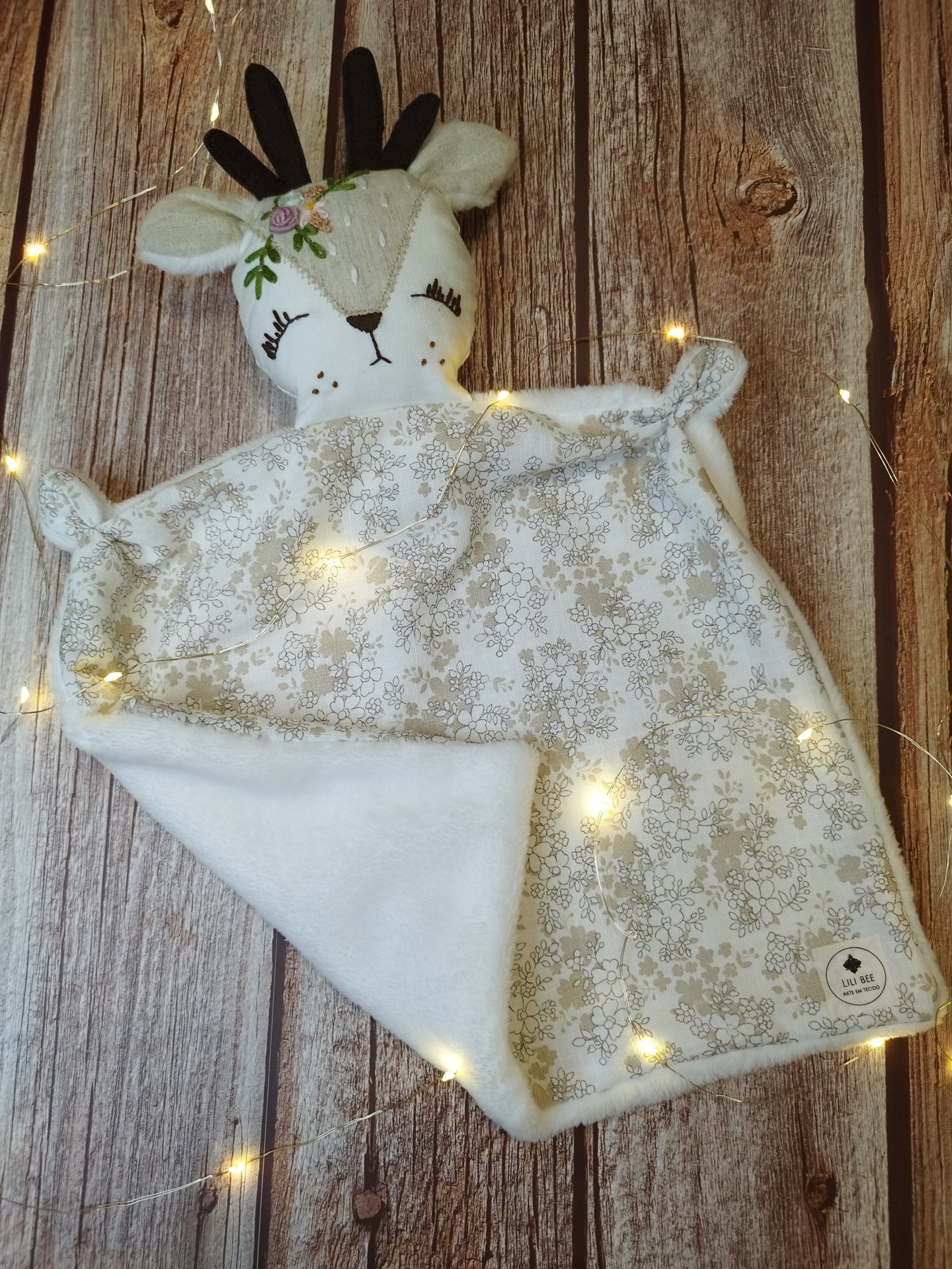 Feito em tecido de algodão de um lado e Minky do outro, este adorável e delicado doudou será um amiguinho de brincadeira e trará conforto para o bebé.