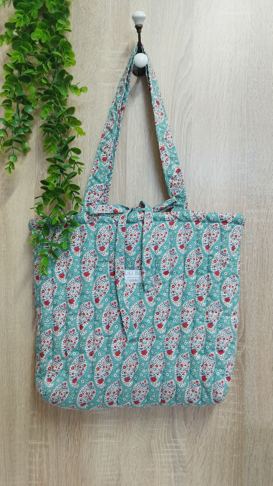 Tote Bag Acolchoado 32,00 € Desconto de %. IVA incluído. Partilhar Cor Azul Verde Turquesa Comprar Contactar 3 unidades em stock O Tote Bag acolchoado da Lili Bee é uma peça linda e versátil, com um design clássico e que ostenta elegância e estilo. Ideal para carregar livros e compras, seu computador portátil ou qualquer outro item do dia-a-dia. Fecha-se com um laço e tem um bolso no interior para ajudar na organização. MATERIAL: 100% Algodão no exterior e forro Sintético na parte acolchoada TAMANHO: Saco: L36cm x A 34cm Alça: 30cm CUIDADOS: Lavar à mão ou à máquina ciclo delicado, pelo avesso e com água fria. Evite torcer Secar à sombra * Por ser um artigo feito à mão, podem ocorrer pequenas diferenças no tamanho * Marca Lili Bee Tags HandmadeHandmade Tode BagTote bag acolchoadaMala acolchoadaMala portátil com alçaBolsaBolsa ToteBolsa tote acolchoadabolsa femininabolsa mulher