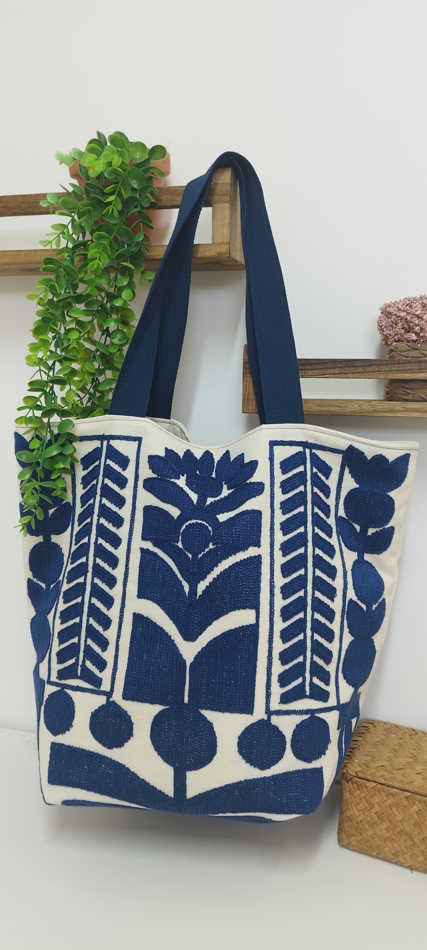 Um Tote Bag único, num tom de azul profundo e vibrante que vais querer levar para todo lado!